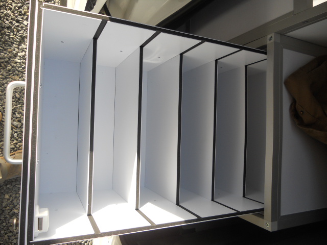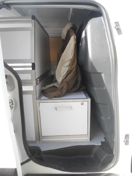 Véhicule Vue de l'arrière 1 Vue de l'arrière 2 Caillebotis + Tiroirs Porte latérale - Bloc tiroir et réserve d'eau + pompe Porte latérale - Bloc tiroirs et réserve d'eau + pompe Tiroirs de rangement